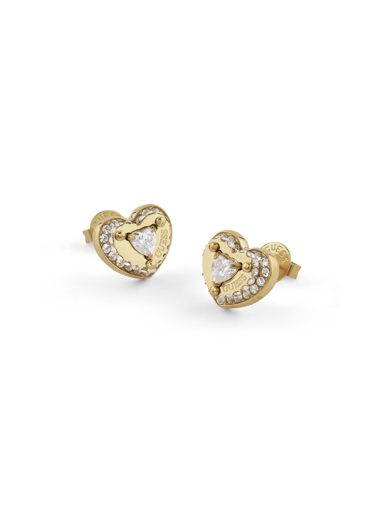 Γυναικεία σκουλαρίκια GUESS STEEL, χρυσά σε σχέδιο καρδιές με πέτρες(1,2cm).